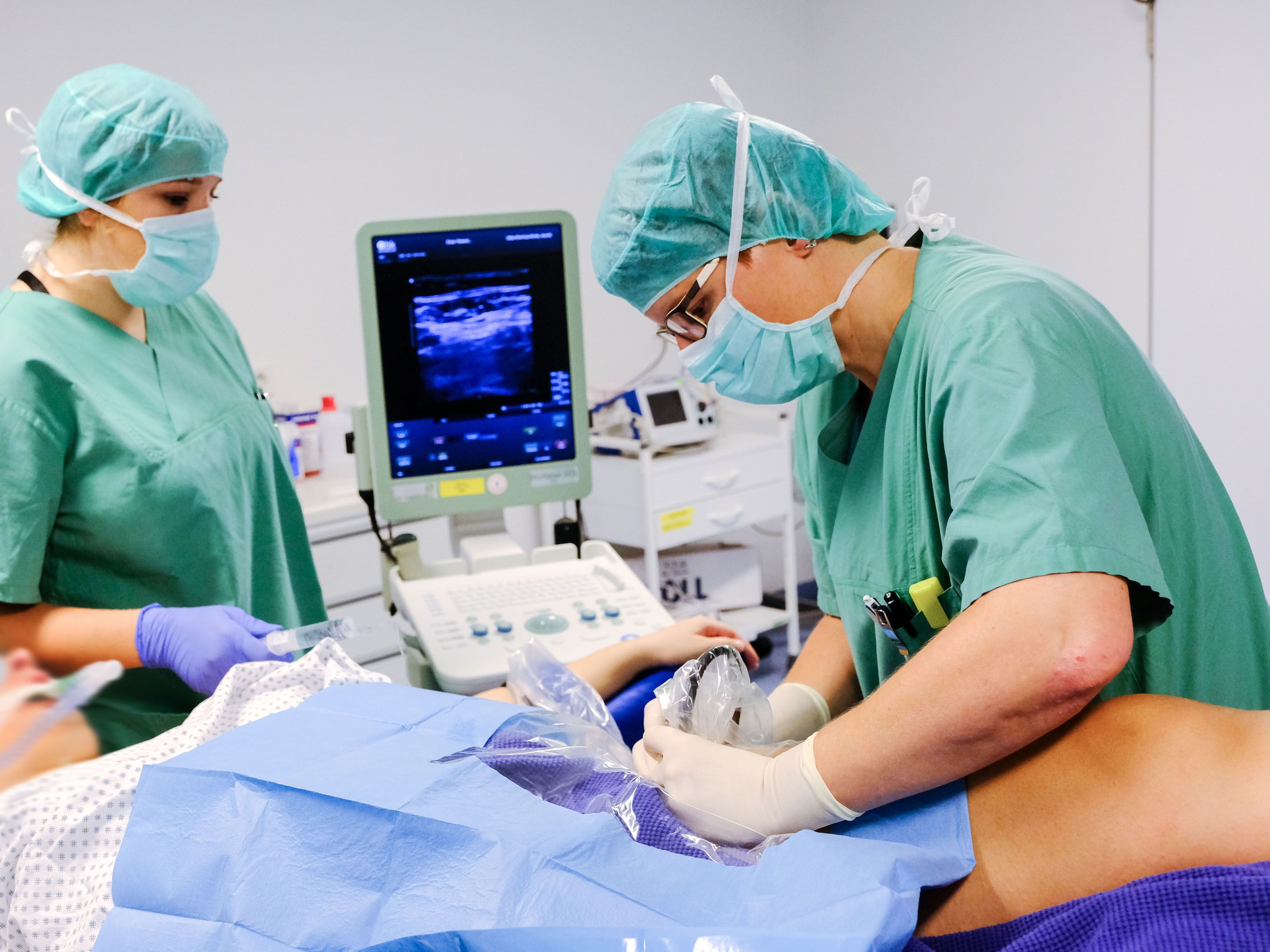 Am OP-Tag werden die Patienten in den OP gefahren, wo sie das Anästhesieteam in Empfang nimmt und für das jeweilige Anästhesieverfahren vorbereitet. Das Anlegen eines Venenzugangs sowie die kontinuierliche Überwachung von Blutdruck, EKG und Sauerstoffsättigung mittels Fingersensor sind dabei obligat. Narkoseeinleitung oder Regionalanästhesie erfolgen in einem speziellen Vorbereitungsraum.