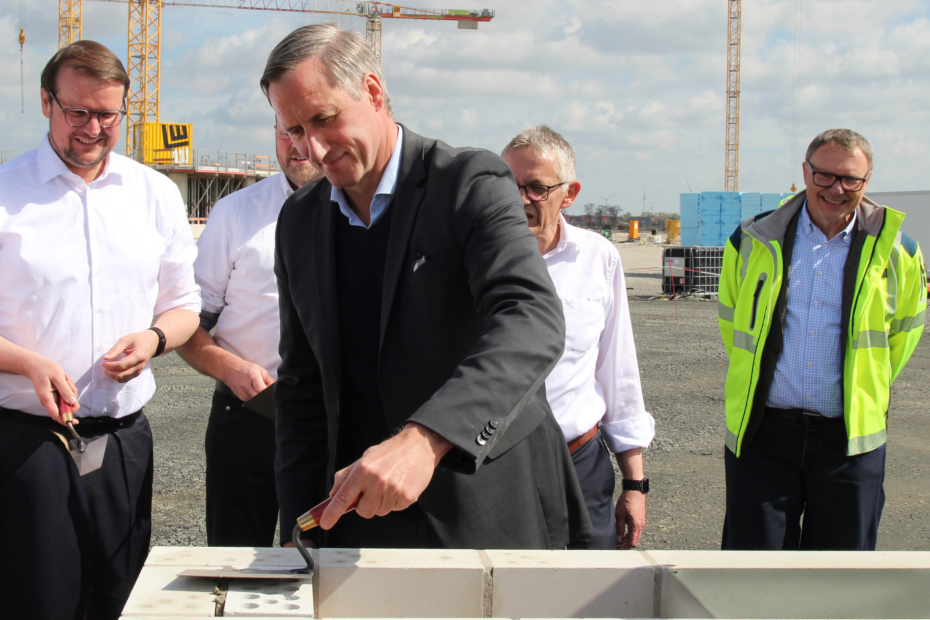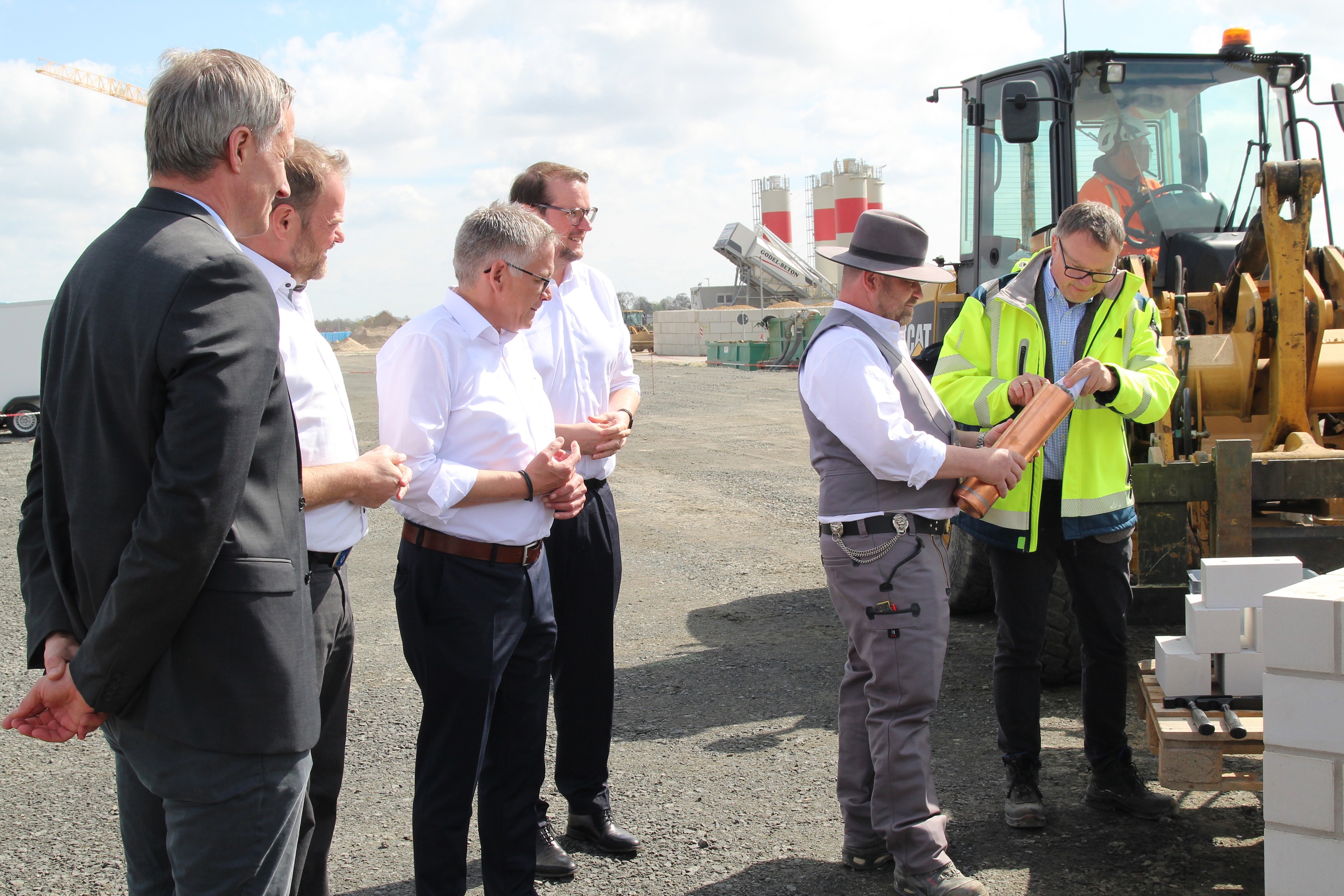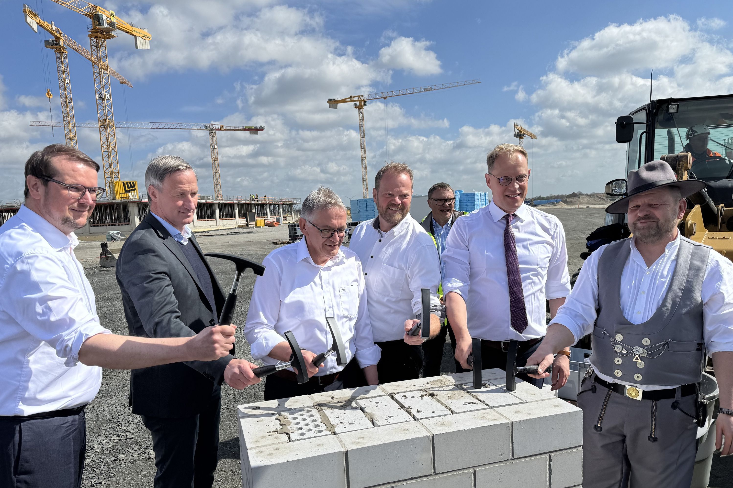 Die Fertigstellung der Zentralklinik Ostfriesische Meere ist für 2029 geplant. Mit dem symbolischen Einlegen einer Zeitkapsel, gefüllt mit aktuellen Dokumenten und Tageszeitungen, wurde der Grundstein offiziell gelegt.