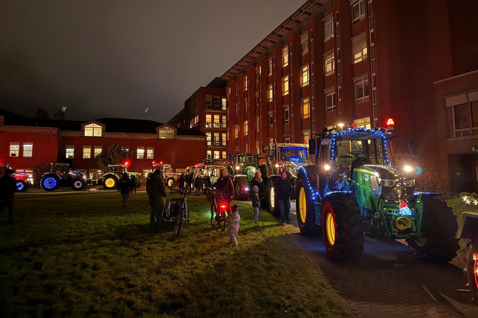 Aurich. Am dritten Adventssonntag, dem 14. Dezember 2025, wurde an der Ubbo-Emmius-Klinik Aurich eine schöne Weihnachtstradition fortgesetzt: Mit geschmückten Traktoren besuchten Ihlower Landwirte und ihre Freunde ab 18 Uhr die Klinik und sorgten für Weihnachtsstimmung. Mehrere Runden fuhren sie um das Gebäude und präsentierten Mitarbeitern, Patienten und Besuchern ihre festlich geschmückten Gefährte. Im Gepäck hatten sie wie jedes Jahr wieder Geschenke für die Kinder, die Weihnachten im Krankenhaus verbringen müssen. Die Aktion fand bereits das sechste Jahr in Folge statt. Die Sachspende kam dank der Unterstützung verschiedener Unternehmen der Region zustande.